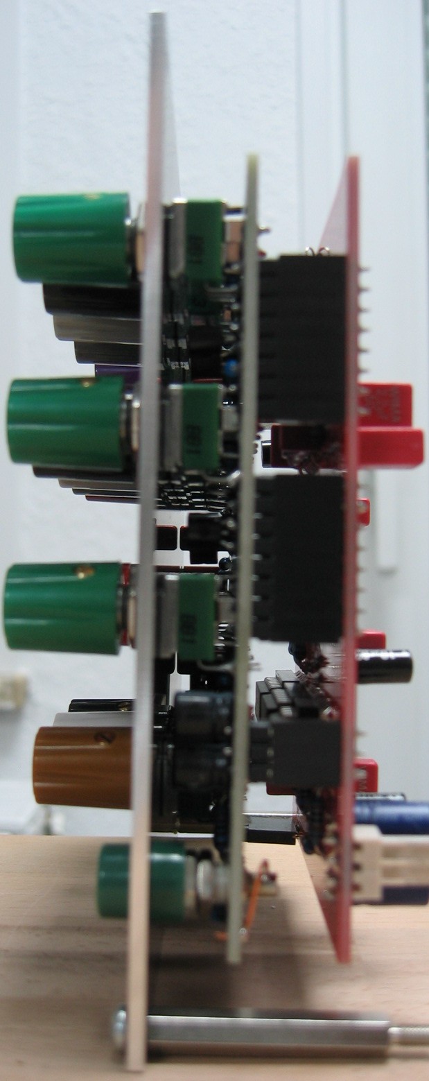 - Due to their height you have to mount some of the capacitors from the backside on the main board. See picturs. Or use longer standoffs.